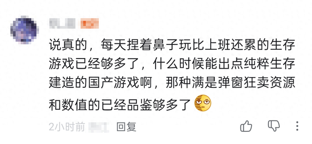 久而久之,当大量采用上述框架的Like产品逐渐挤满市场,不少生存建造新品也开始被玩家吐槽“体验同质化”、“游戏不对味”......慢慢的,生存网游就在“方向错误”的泥沼中愈走愈深。